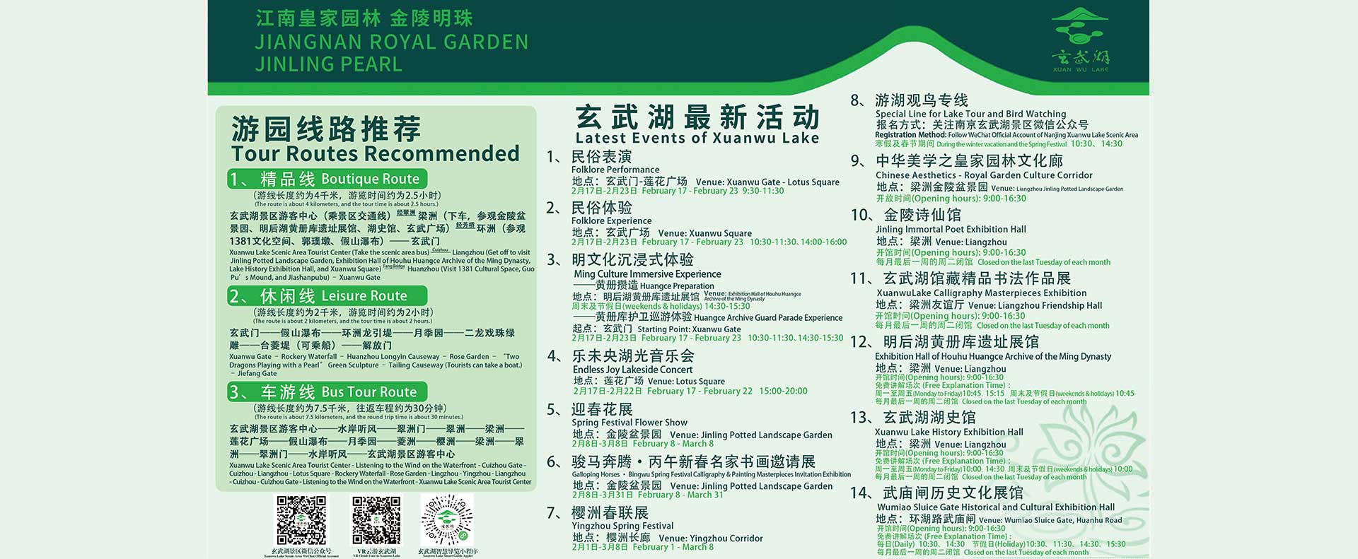 玄武湖景区为免门票景区(2010 年起免费开放),其中环湖路区域全年 24 小时开放,五洲及情侣园开放时间为:4 月至 10 月 6:00-22:00,11 月至次年 3月 6:00-21:00。
