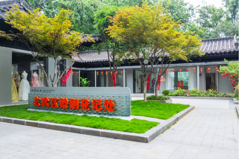 玄武区婚姻登记处:从空中俯瞰,玄武湖如同一块美玉镶嵌在城市中心。玄武区婚姻登记处掩映在山水城林中,窗外的紫金山、明城墙和高楼大厦连起“最美天际线”,成为一段段“天赐良缘”的见证者。婚姻登记区、中式颁证区、现代仪式区、婚俗文化展示区、福彩公益区、婚姻家庭辅导室……玄武区婚姻登记处以“园林+婚俗”为特色,打造集登记服务、文化传承、婚俗创新于一体的综合服务平台。