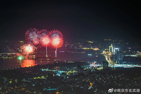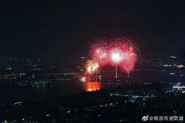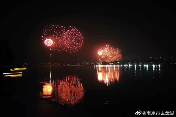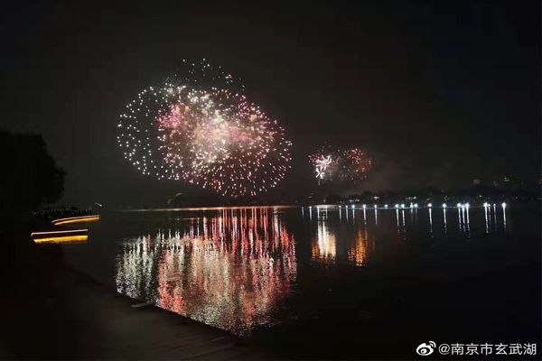 庆祝新中国成立70周年,玄武湖焰火闪耀金陵夜空