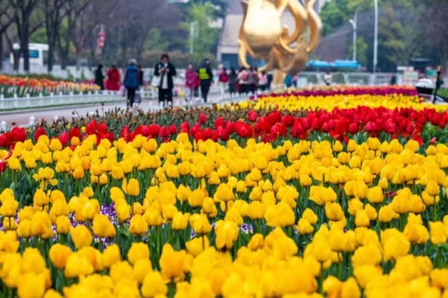 4、郁金香季。赏花期2月底至4月中旬。主要赏花地点为情侣园,今年已栽植郁金香品种有王朝、紫水晶、香奈儿、天使、风尚、哥伦布等30多个品种约20万球,另种植洋水仙,风信子等7个品种1万多球。