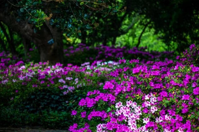 6、牡丹杜鹃季。赏花期4月中旬至5月。牡丹主要赏花地点在情侣园牡丹岛。为配合牡丹季,4月拟在梁洲金陵盆景园还将举办牡丹花展,届时将展出盆栽牡丹100余盆,增加卷叶红、彤云、春红娇艳、绿幕隐玉等多个新品种,同时展出的还有红富士、粉面桃花、桃花粉雪等新品种芍药。杜鹃主要赏花地点在梁洲杜鹃园、情侣园杜鹃山及翠虹堤沿线。同期其他花卉有雪柳、绣线菊、丁香等。