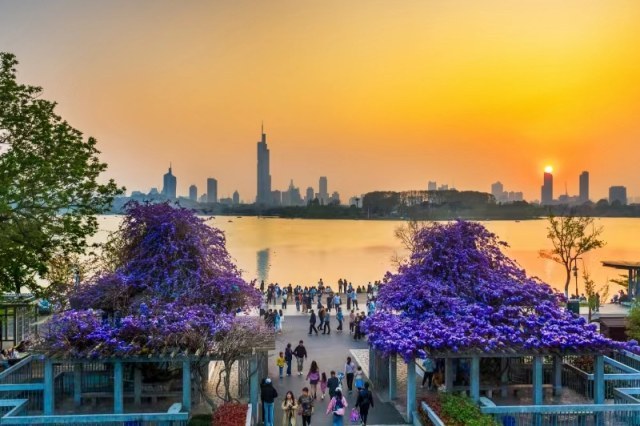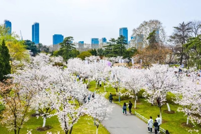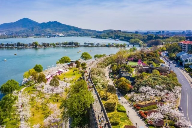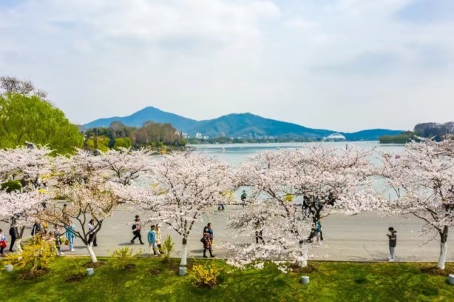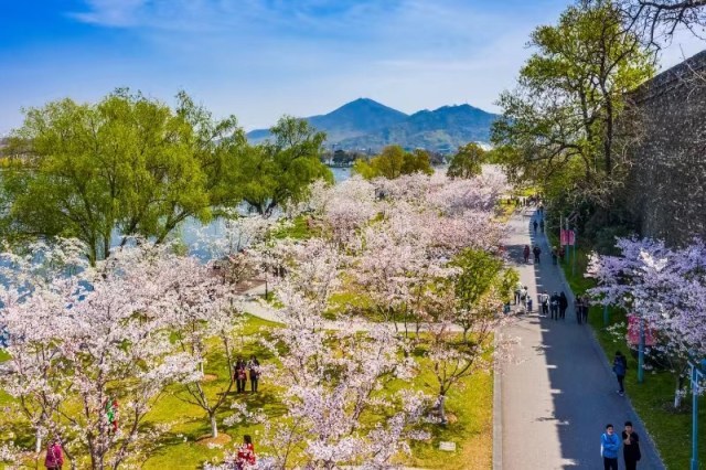 3、樱花季。赏花期3月至4月。玄武湖樱花总量近4300株,分为早、中、晚樱3大类36个品种,呈“一带三线三点”布局,一带指解放门至玄武门的环湖路明城墙赏樱风光带;“三线”分别指解放门——菱洲——樱洲——莲花广场——芳桥;玄武门——假山瀑布——翠虹堤——樱洲——芳桥;十里长堤门——风尚大道——教堂大草坪——樱花大道的赏樱游览路线。“三点”是赏樱重要观赏节点,分别是樱洲、芳桥、情侣园。同期其他花卉主要有琼花、木本绣球、白玉兰、樱桃花、金钟、迎春、紫荆等。