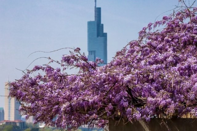 7、紫藤季。赏花期4月份。主要赏花地为梁洲紫藤花架、情侣园S花架及水岸听风景点。同期藤本花卉还有木香,主要赏花地位于月季园、台菱花架及盆景园。