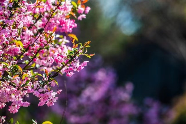 除了梅花正值观赏期,目前景区仍有部分蜡梅还在开放,未来一周内游客还可以观赏到“二梅共赏”的美景。另外,景区樱洲与环洲之间的内湖区域,部分二月兰已经开始悄然绽放,预计再过10天将迎来观赏期。