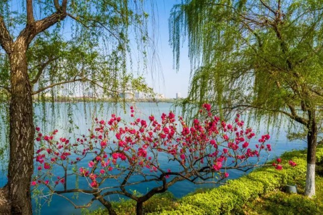 5、桃花海棠季。赏花期4月份。桃花主要赏花地位于玄武门至翠洲门沿线、十里长堤及情侣园鹊桥观鱼景区。海棠主要赏花地点位于环洲南段、情侣园、环湖路沿线,有贴梗海棠、垂丝海棠、木瓜海棠、西府海棠、北美海棠等多个品种。