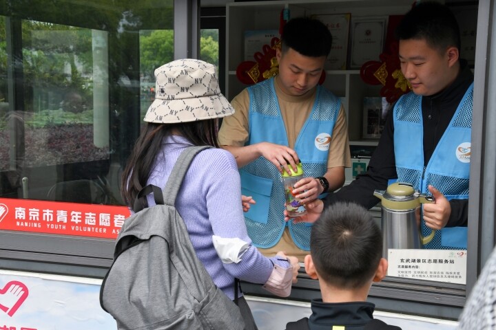 此外,五一假期,“我爱玄武湖”志愿服务队每天还会组织党员志愿者、社会志愿者和高校志愿者、社区老年志愿者100多人,在志愿服务站、游客中心、观光车站点等处为游客发放文明旅游宣传册、景区导游图等资料,提供文明旅游宣传引导、游览咨询、购票指引等志愿服务。