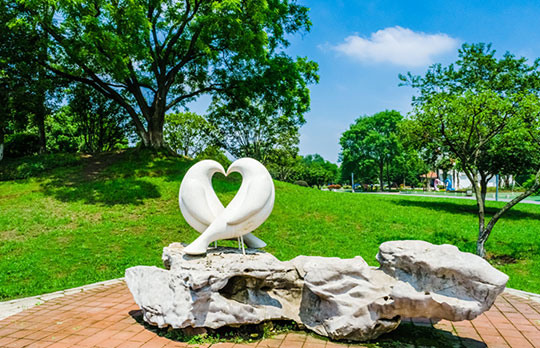 在情侣园内,遍布着以爱情为主题的雕塑与打卡点,为园区增添浓郁浪漫氛围。爱神广场传递永恒爱意;鸽子广场上白鸽纷飞,象征纯洁爱情;“缘石”暗藏美好缘分的期许;“麒麟送子”“鹊桥”“双栖”“花语”“花神”等爱情主题雕塑浪漫且美好。无论是拍照留念,还是漫步其中,都能沉浸在爱情主题的甜蜜氛围里。